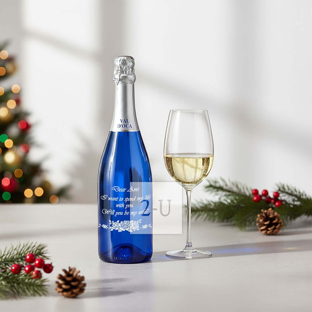 在礼品酒的酒瓶上雕刻上求婚之语。