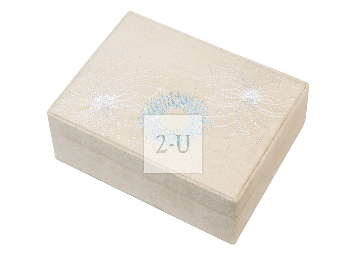 欧式时尚的双层首饰盒。盒子表面带有刺绣高档又雅致。盒子里同时能摆放个人珍爱的首饰贵重小物品,收藏保管都很方便。 双层设计。表层可以取出。功能区分细致、可以分别放耳钉、项链、戒指等。