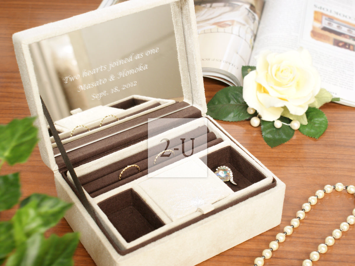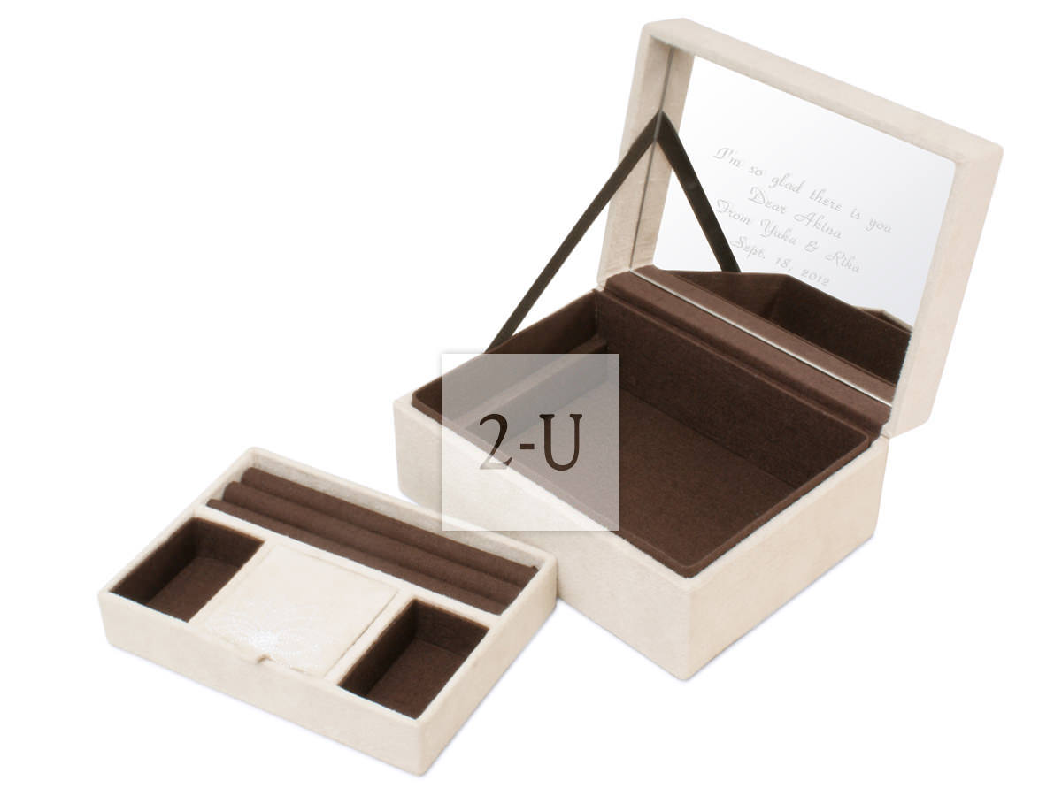 可在首饰盒里面的镜面根据您的希望刻上祝福语等。
