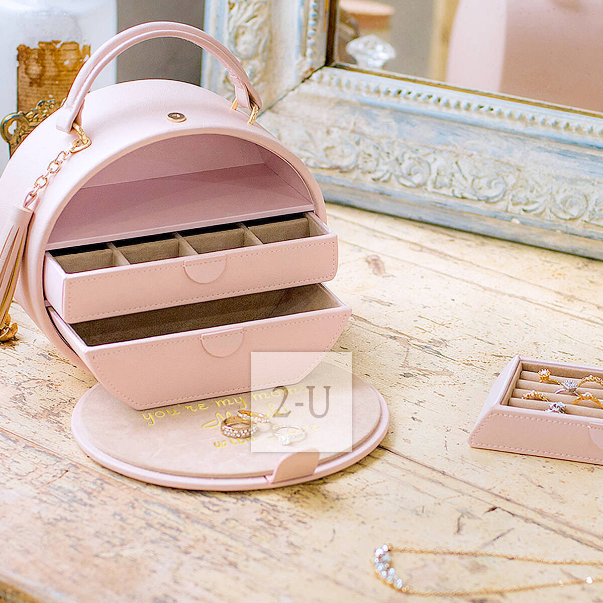 这款以包包为灵感设计的淡粉色首饰盒,在精美展示珠宝的同时也能兼顾收纳。自带提手,携带十分方便!即便只是随心摆放,也是一件极具装饰感的精美摆件。