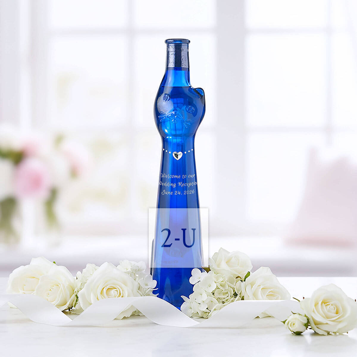 蓝猫白葡萄酒瓶子为蓝色,如蓝宝石般美丽,猫的形状又可爱优雅,如艺术品一般,可以插花,或者就只做一件摆设。