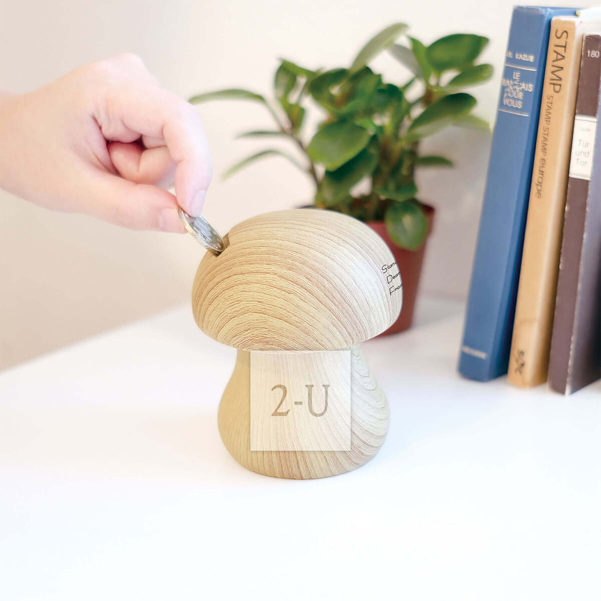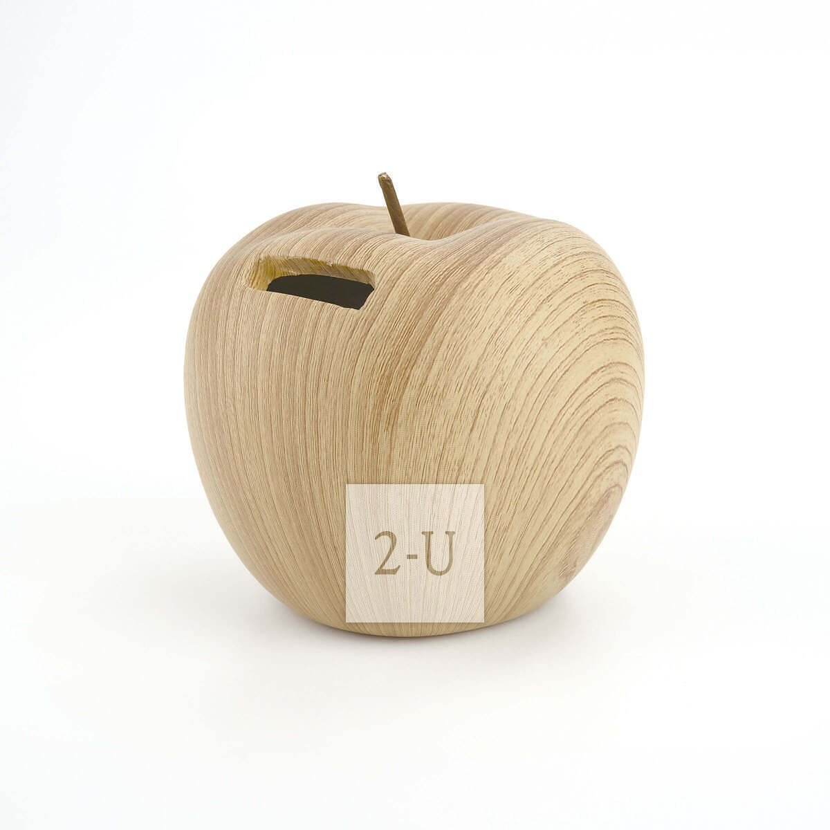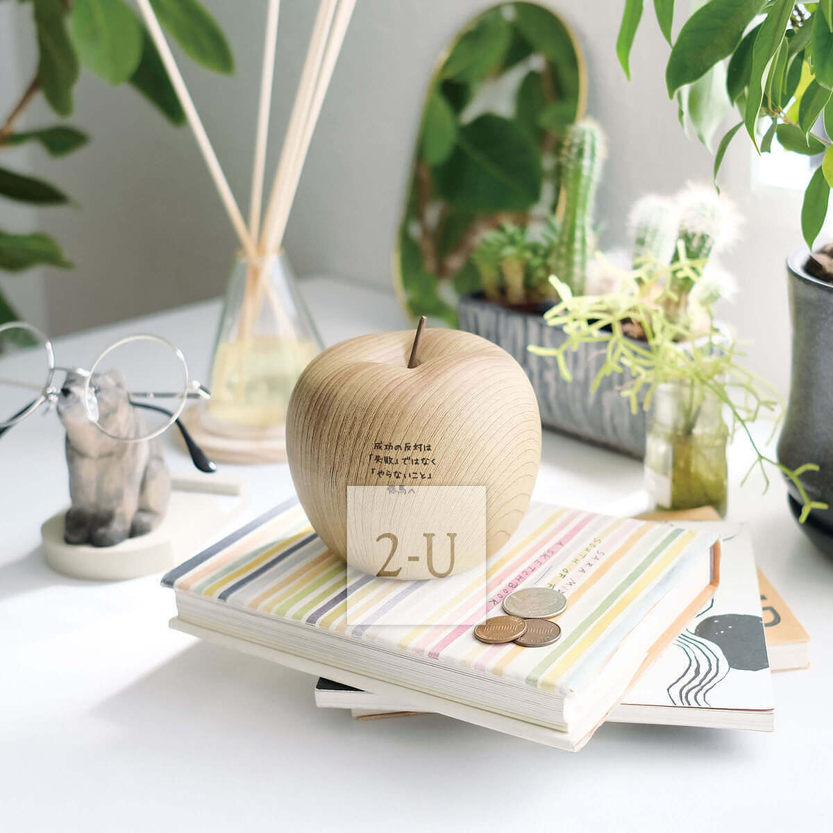 这是一款外观材质像真实木,然而却是陶瓷的存钱罐扑满。形状为逼真的苹果梨蘑菇等食物外形,背部有一个投币口,可以存放大约6万日元的500日元硬币。还可以作为纸镇使用。