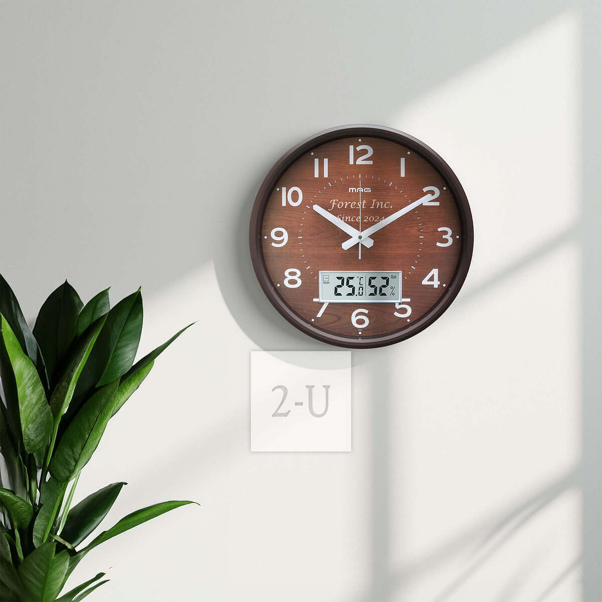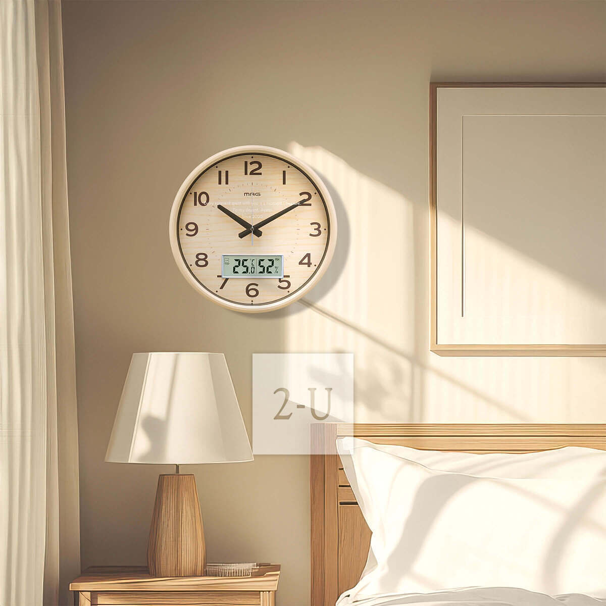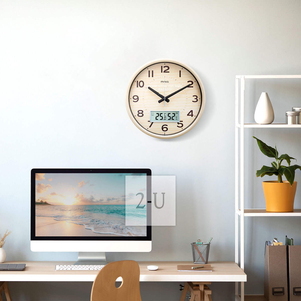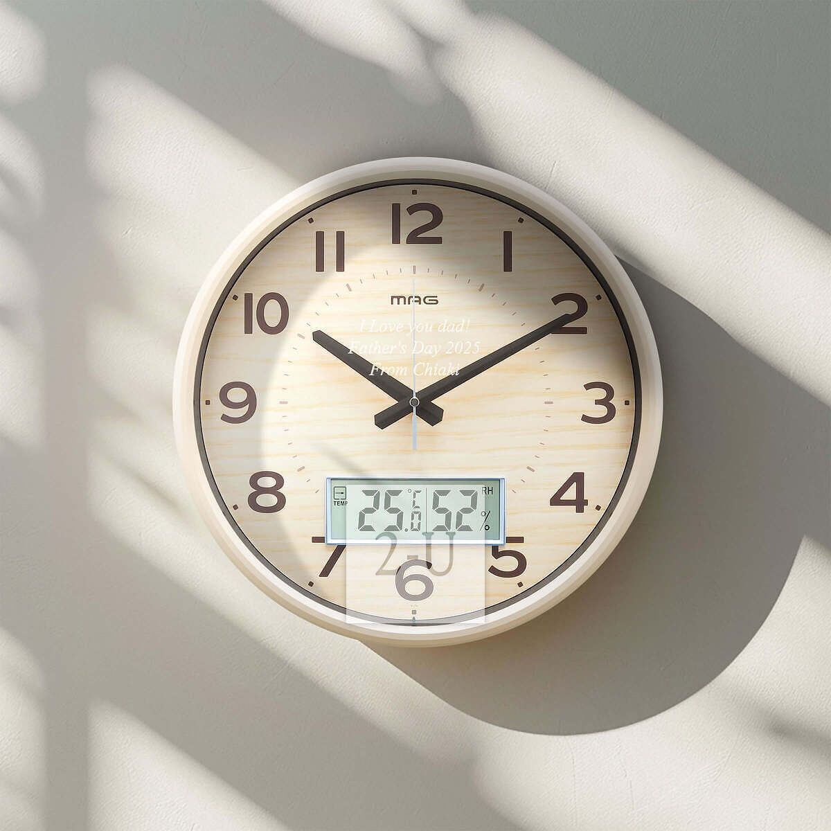 模拟时钟与数字温湿度计 (电波时钟) 原木色