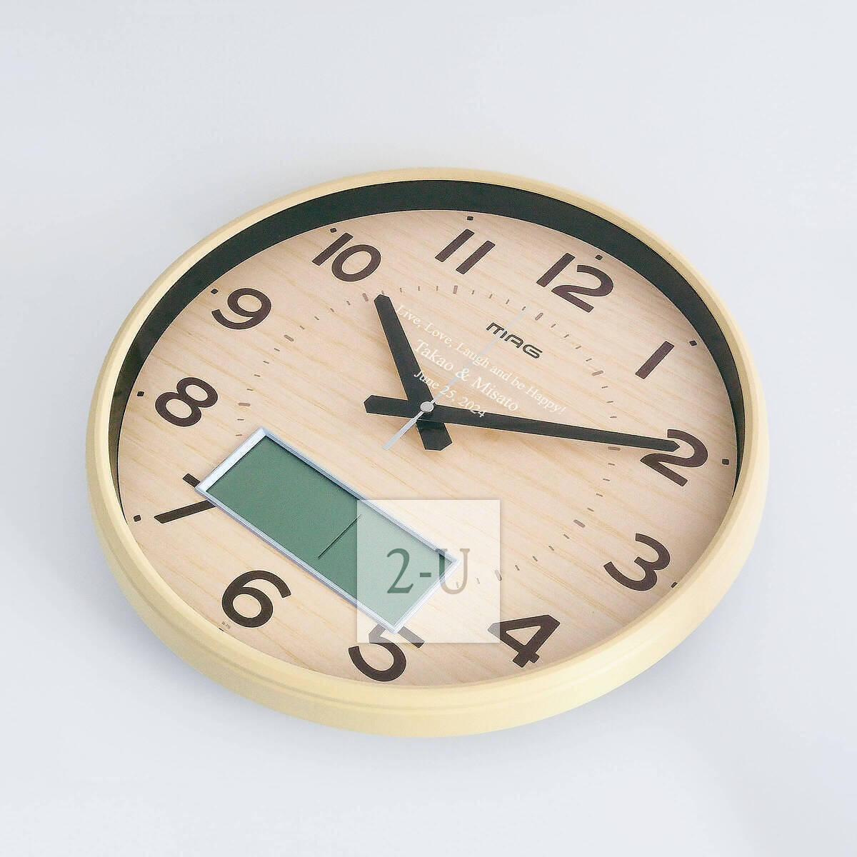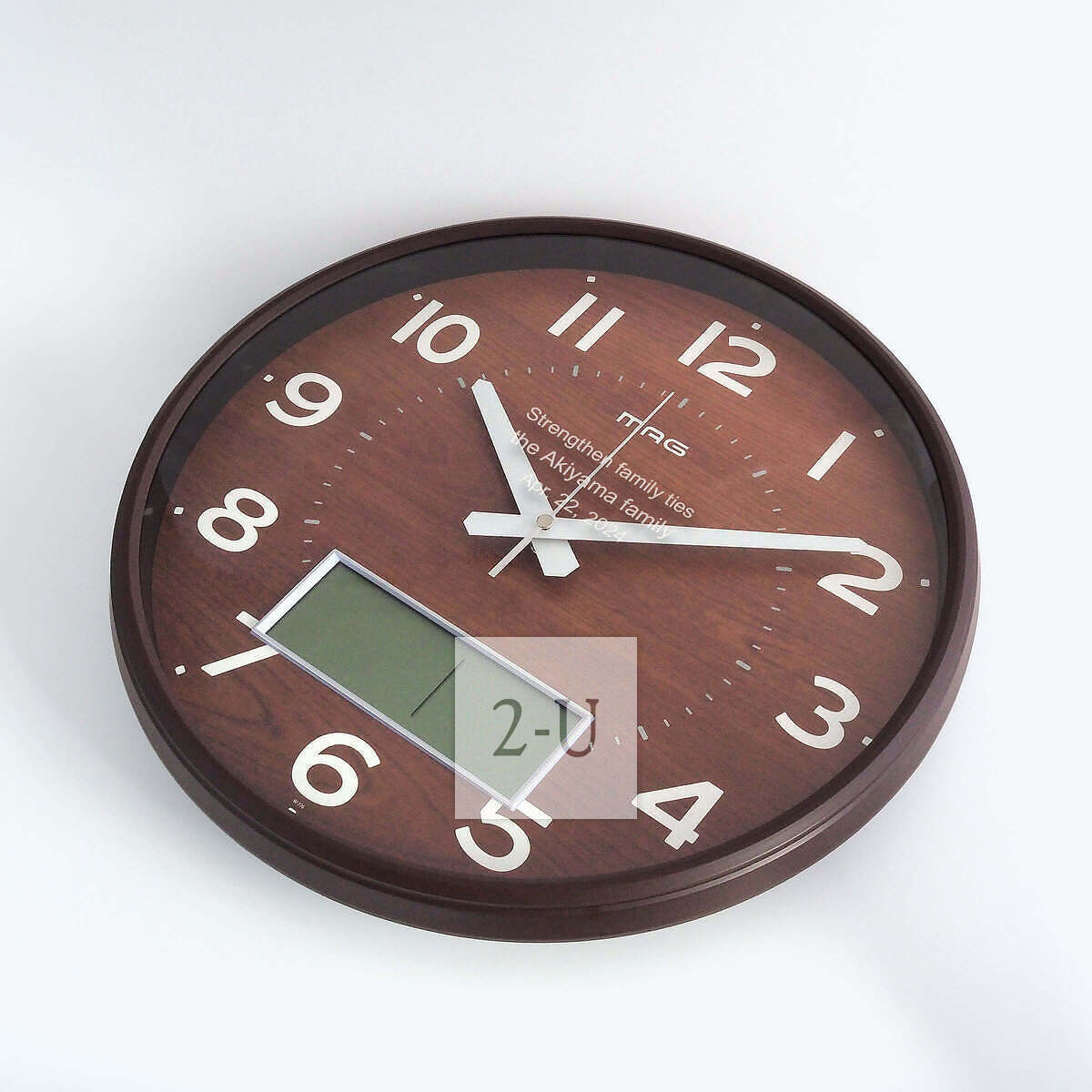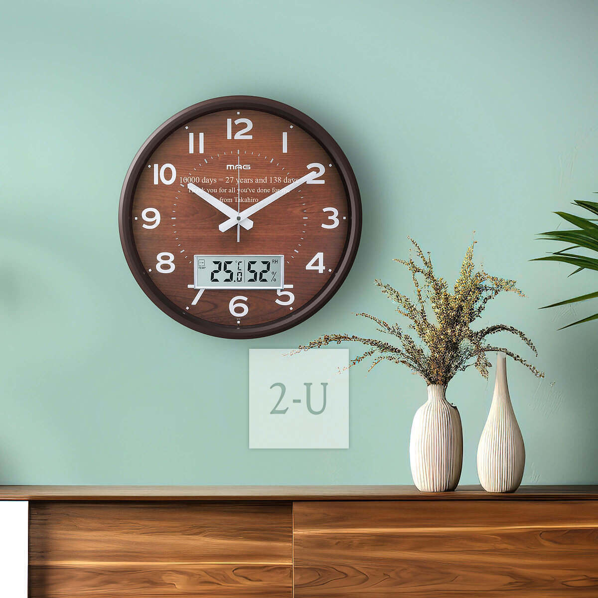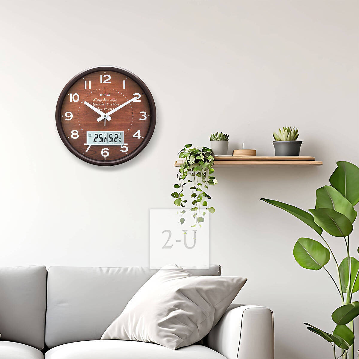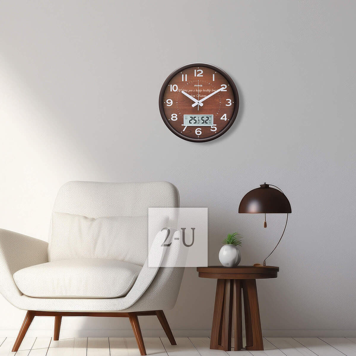 模拟时钟与数字温湿度计 (电波时钟) 原木色