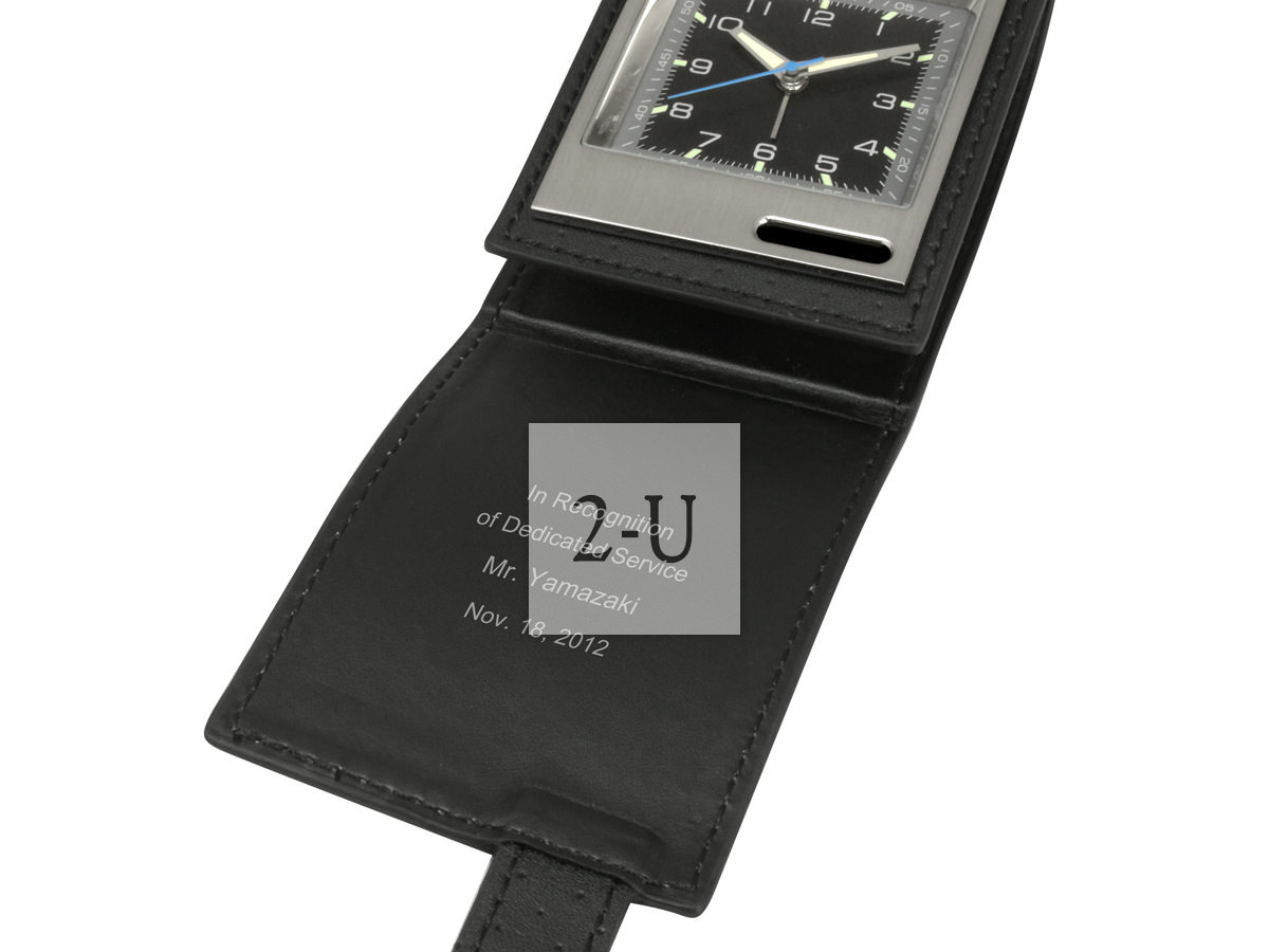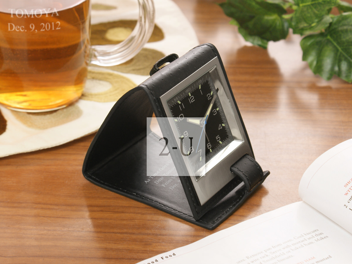 真皮套折叠式便携薄款小闹钟 黑色 个性定制diy客制化印名字祝福的独具创意的礼物礼品,毕业留念纪念品,生日礼物情人节礼物,回赠礼品