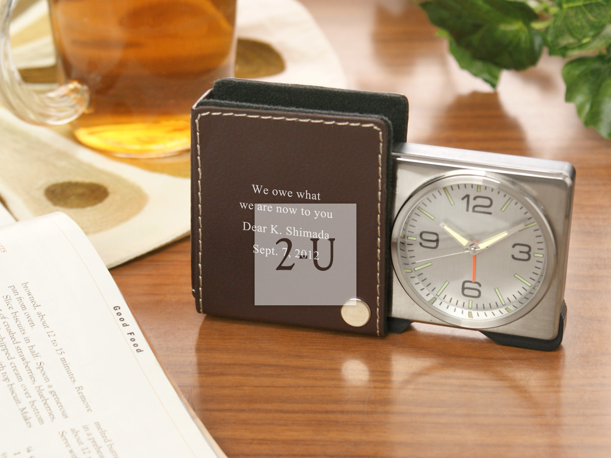 真皮套便携旅行出差小闹钟 棕色 个性定制diy客制化印名字祝福的独具创意的礼物礼品,毕业留念纪念品,生日礼物情人节礼物,回赠礼品