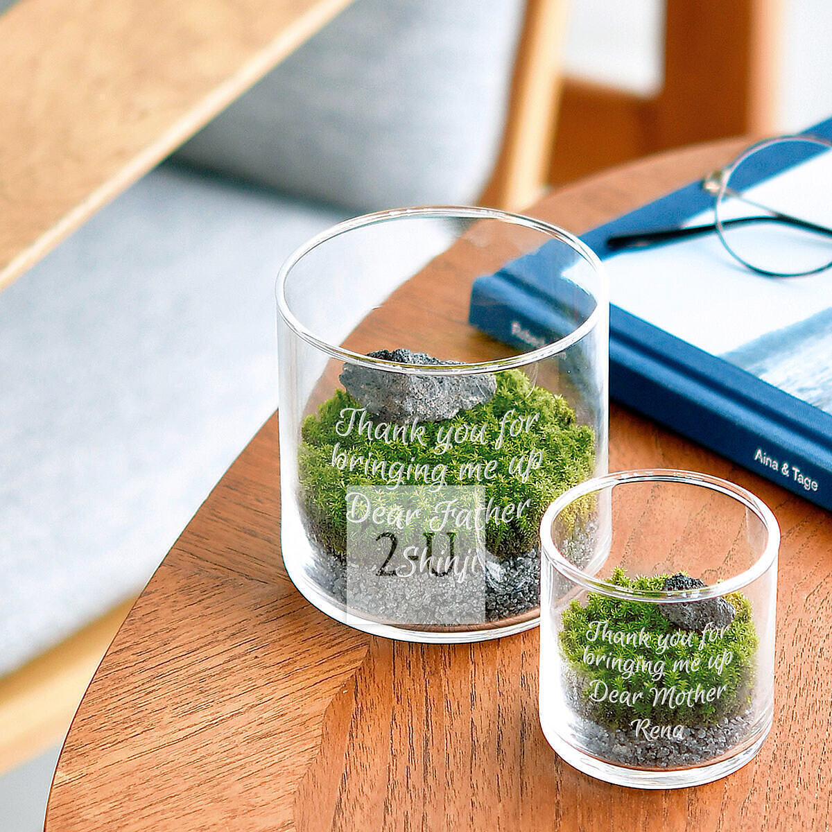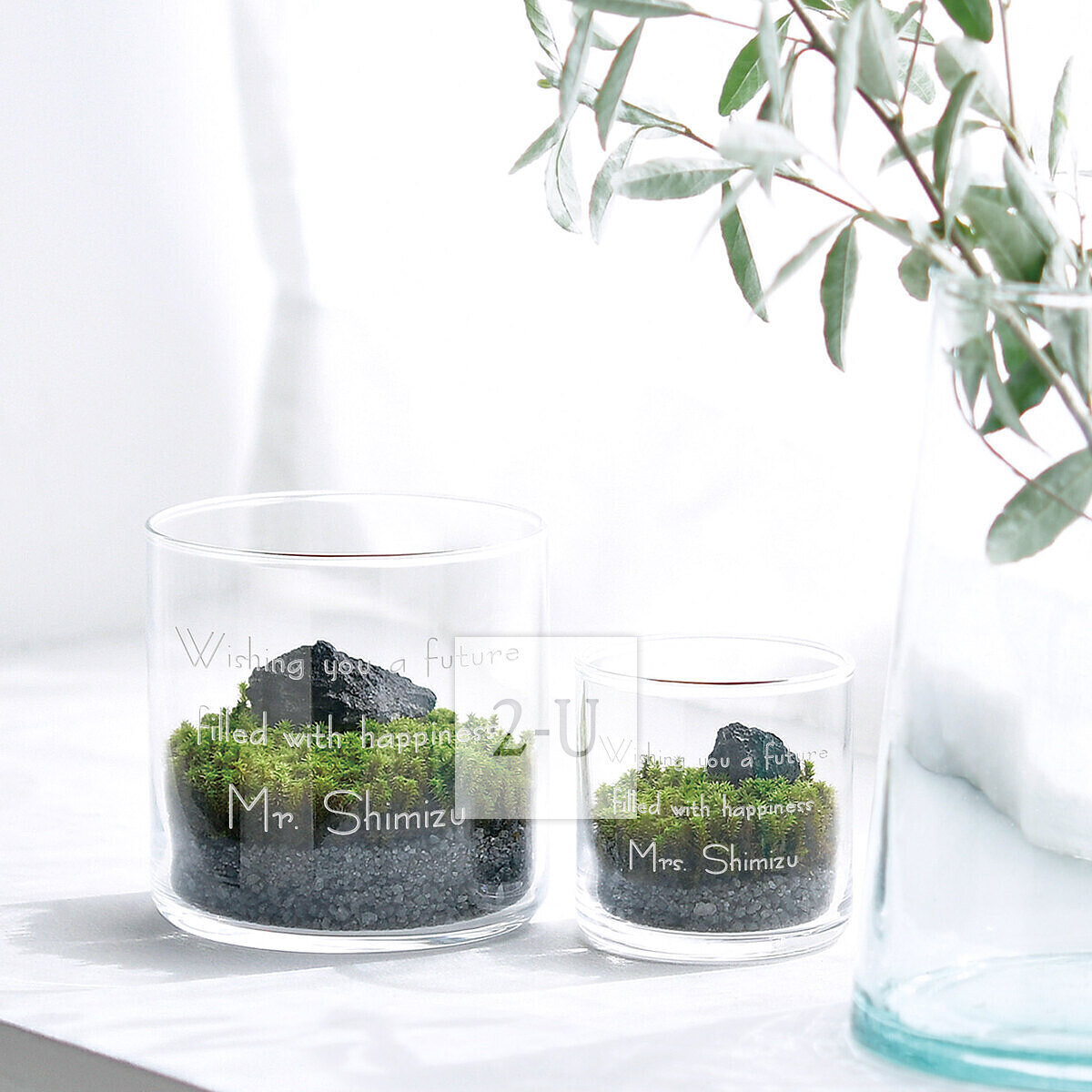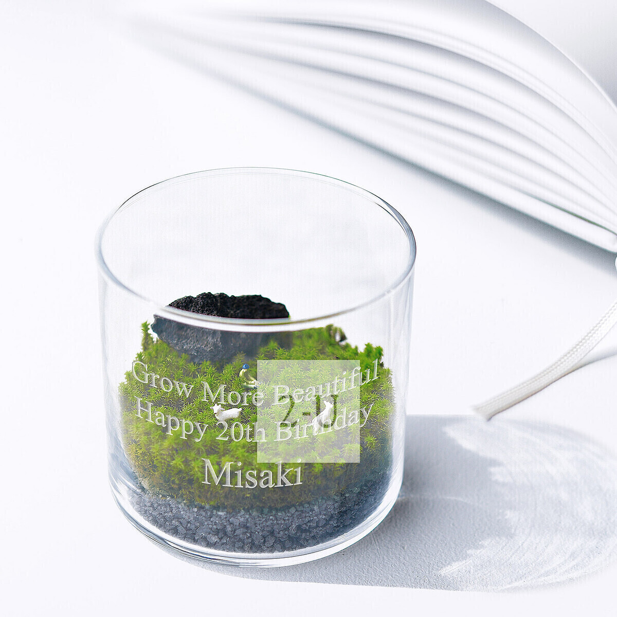 在威士忌杯大小的小型玻璃容器中铺上附带的砂石和苔藓。转瞬之间,一个时尚的苔藓微景观就完成了!