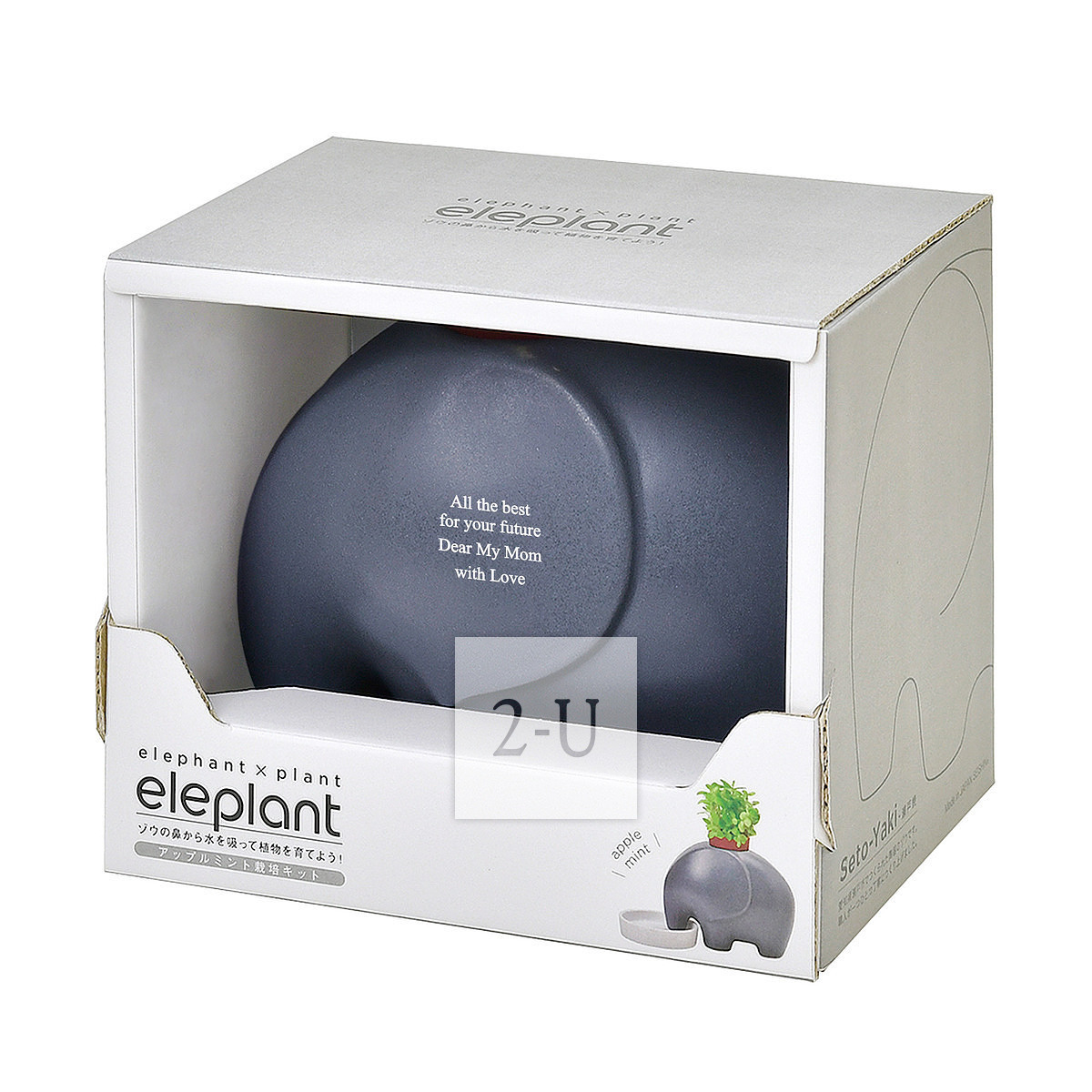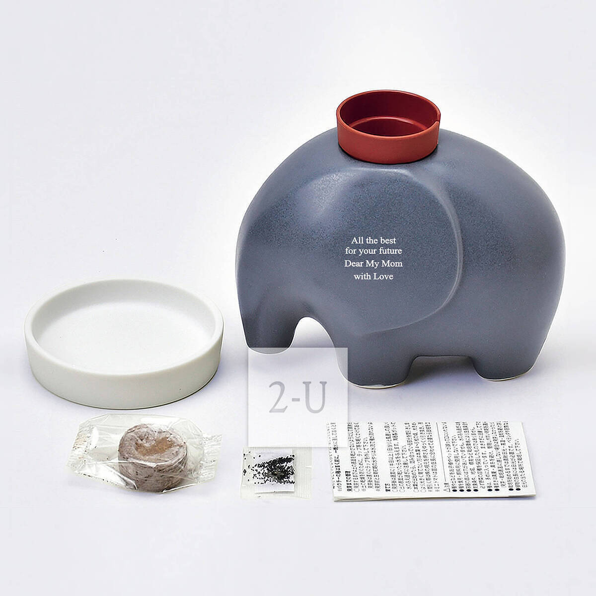 文字颜色 : 灰色 尺寸 : 约 W120 x H93 x 70 mm(大象),约 Φ74 x 17 mm(底盘) 套装内容 : 大象本体、泥炭盆、种子、说明书、底盘 盒子 : 约 135 x 115 x 95 mm MADE IN JAPAN