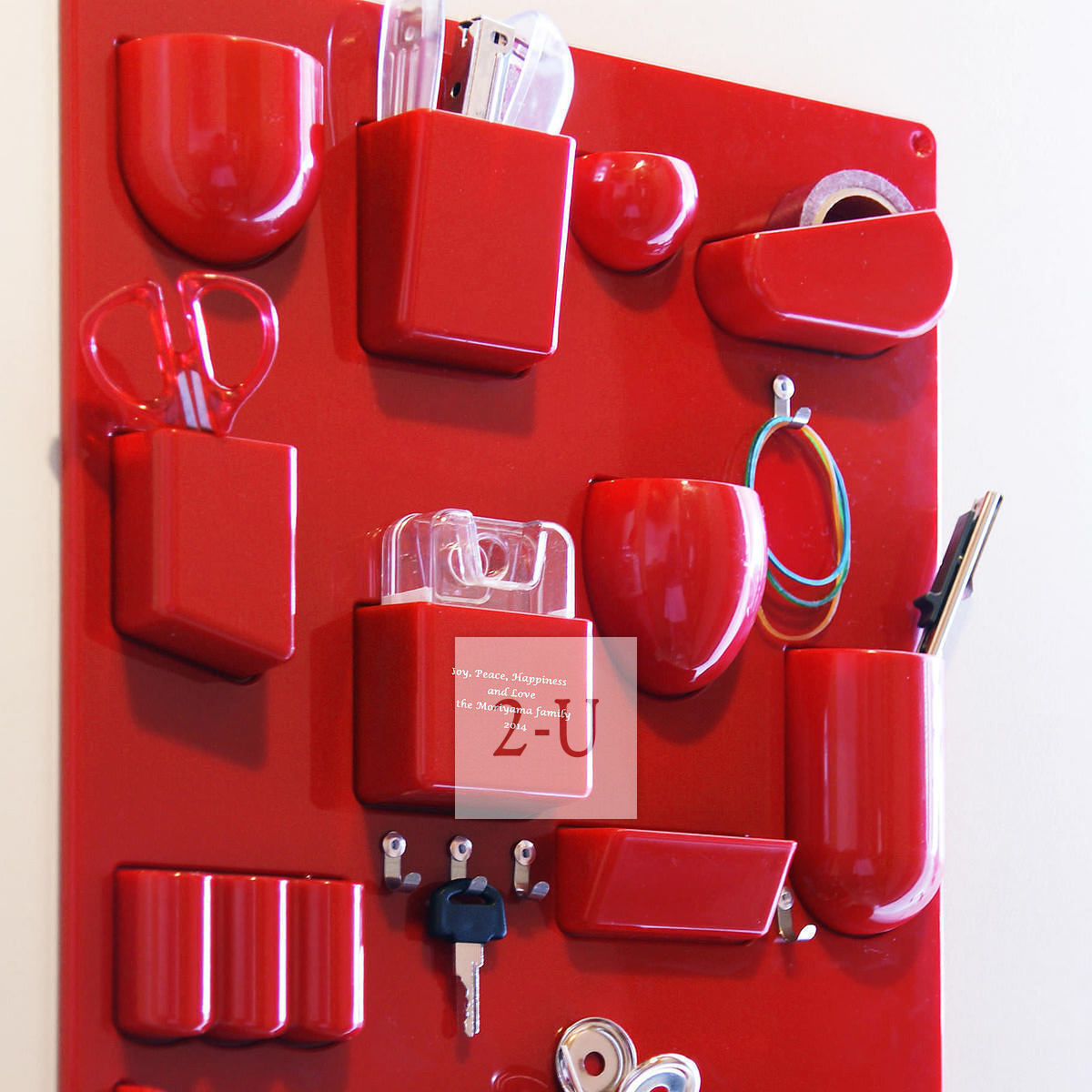 ミッドセンチュリー家具のリプロダクト品。形の異なる複数のポケットとフックのついた収納ボードです。 四隅の穴にねじで壁面固定できますが、背面にはマグネットも付いているので、冷蔵庫やマンションドア等に貼り付けることも可能。お部屋に散らかりがちなバラバラした小物をオシャレにまとめてくれます。