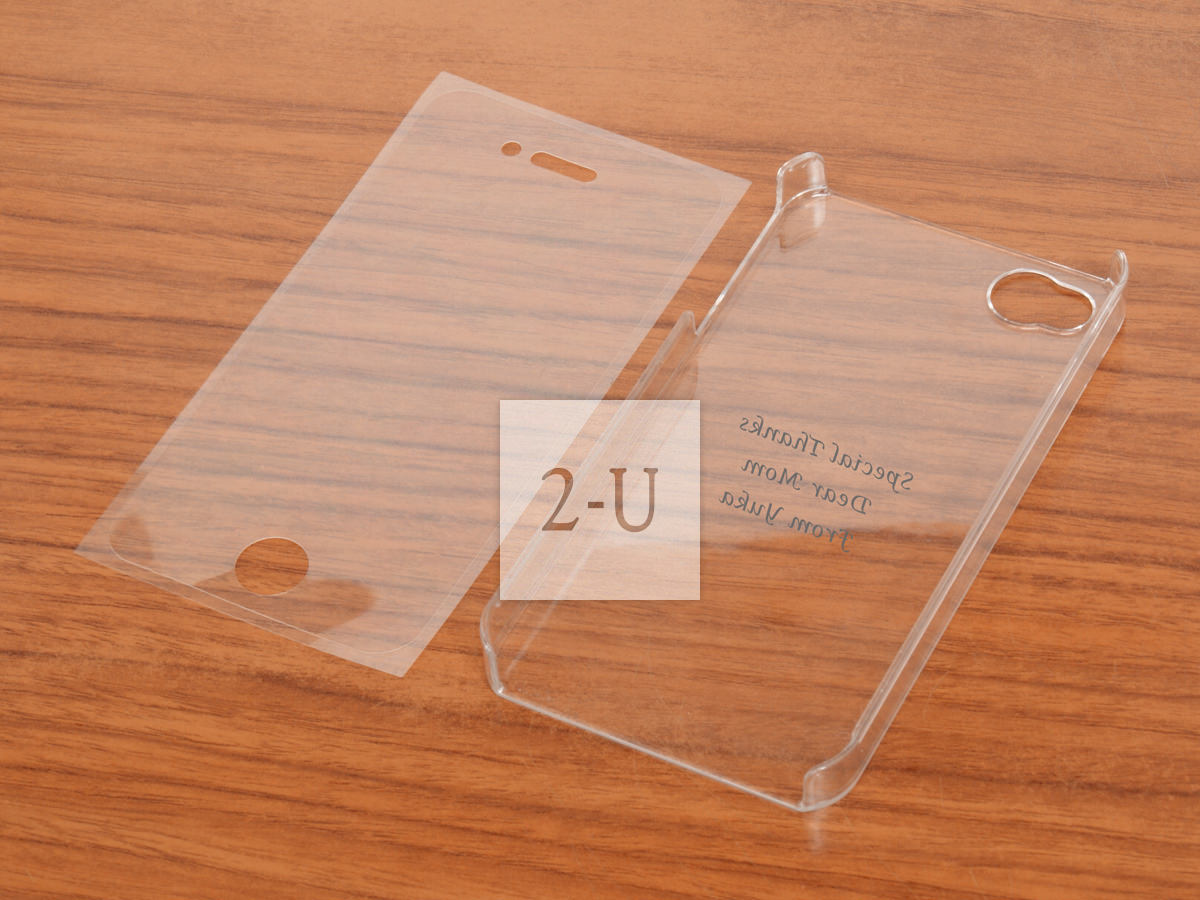 为 iPhone 4/4S 量身定制的手机保护壳。穿在心爱的 iPhone 上不仅可以保护 iPhone 4/4S 免遭弄脏或者划伤、还可以非常清晰的看到个性定制喷印的祝福语。就如同喷印在 iPhone 上一样。 附有可以保护前面液晶全屏的保护膜。