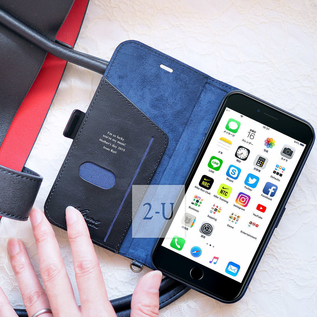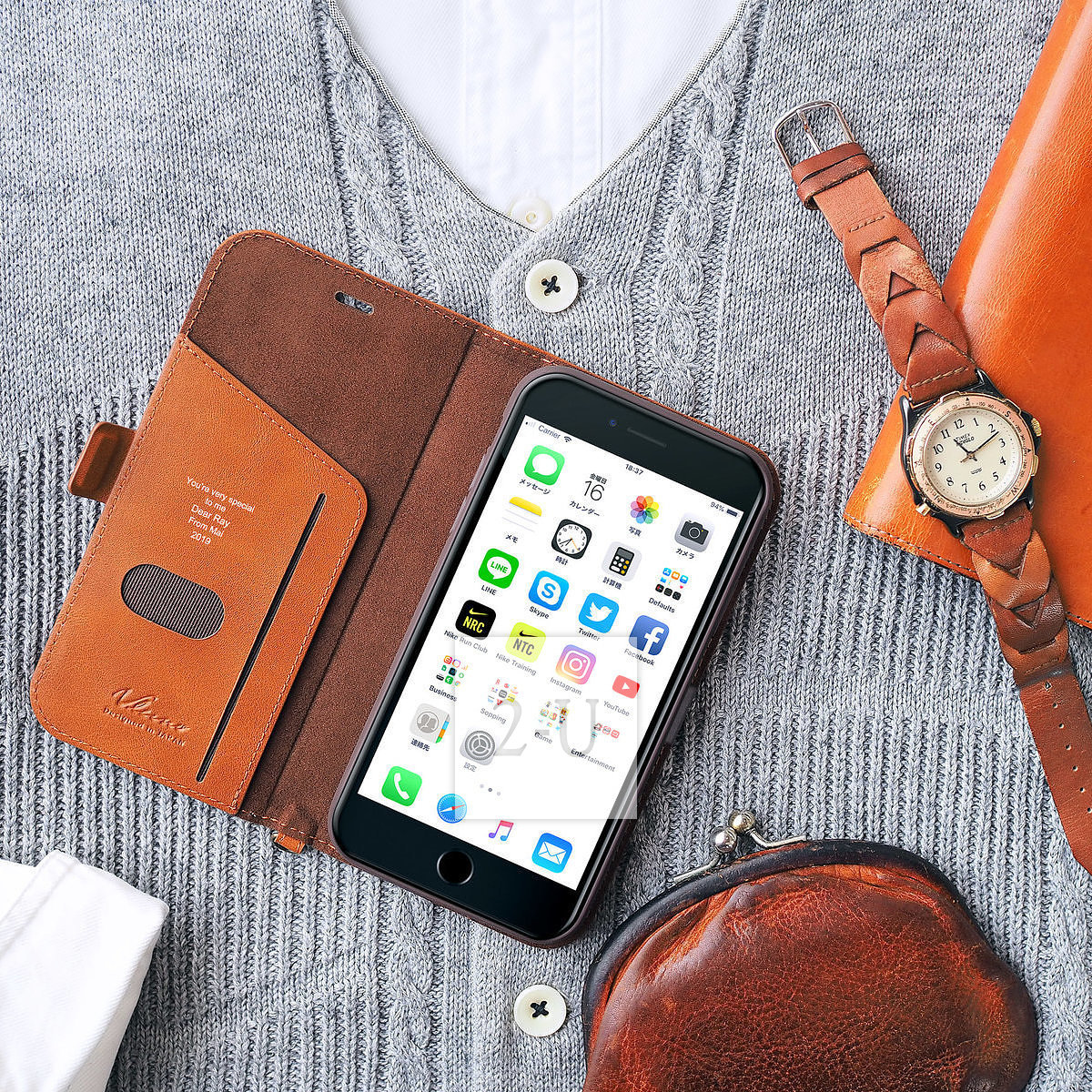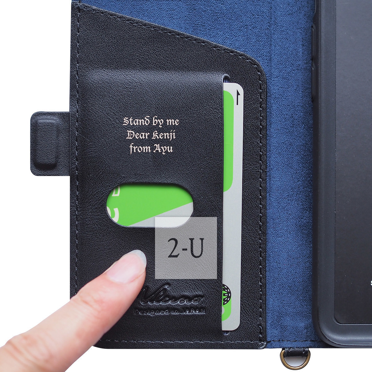 受話口つきのフラップなので、閉じたままで通話か可能です。また、マグネットフラップでしっかりフラップが固定されます。