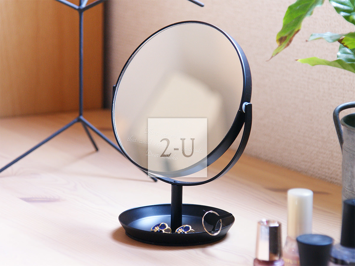 日本制圆形镜子化妆镜 带小鸟首饰盘和放大镜功能 黑色 客制化diy个性定制的雕刻文字祝福的创意乔迁新居/情人节礼物/生日礼物/结婚礼品/贺礼/纪念品。