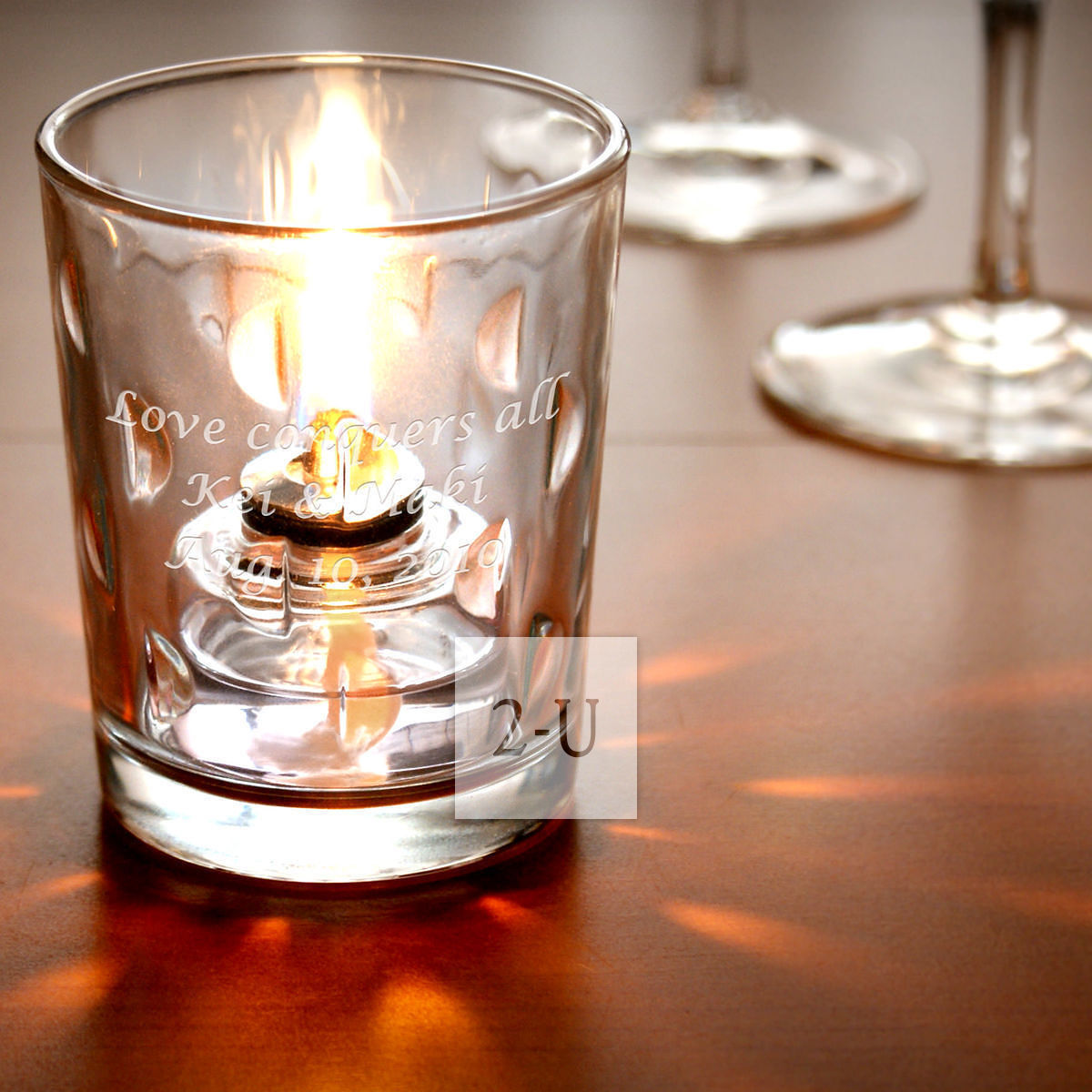 玻璃杯身上可以雕刻您喜欢的信息。