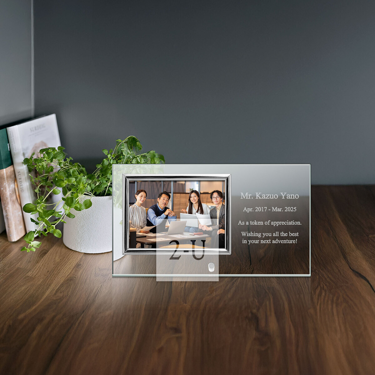 在定制相框中放入孩子们的照片,并刻上“一直以来谢谢您”的留言。即使是不擅长使用电子设备的老人家,收到后也能立刻摆放起来欣赏。