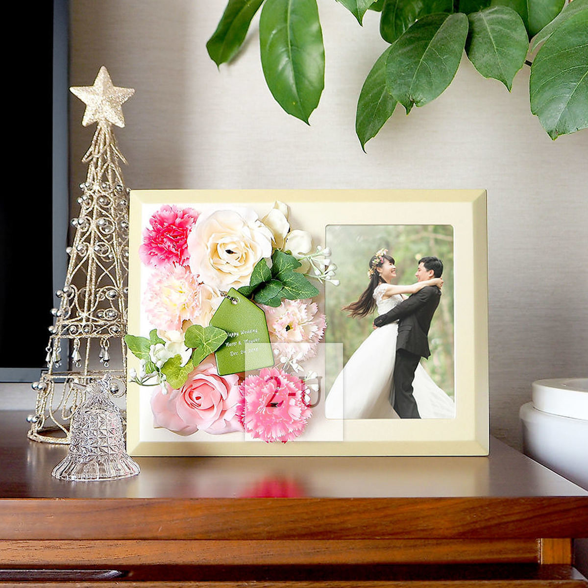 相框里摆放着美丽的鲜花和你特别的心思的话语照片等一起融合装饰的豪华仿真花相架。不仅美丽可以装饰和净化居室,还带着你特别的心思有着特别的纪念意义。相框可以放入明信片大小的照片,带着鲜花祝福美丽豪华的相框适合婚礼,七五三,生日,订婚等等各种场合。