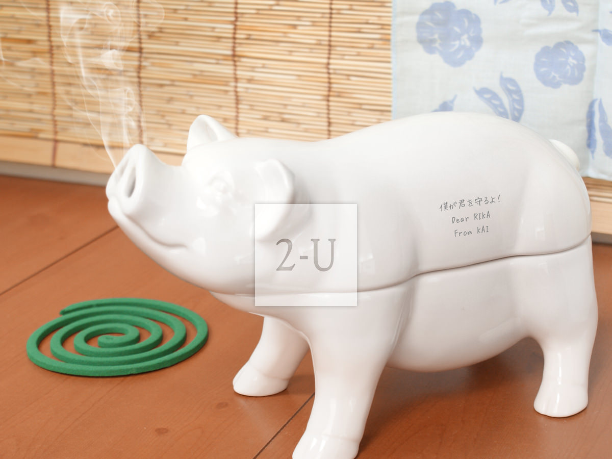 reac Japan 陶瓷小猪香熏炉盘香蚊香器 白色 diy客制化个性定制可以印名字等信息的惊喜创意生日礼物/礼品/贺礼/纪念品。