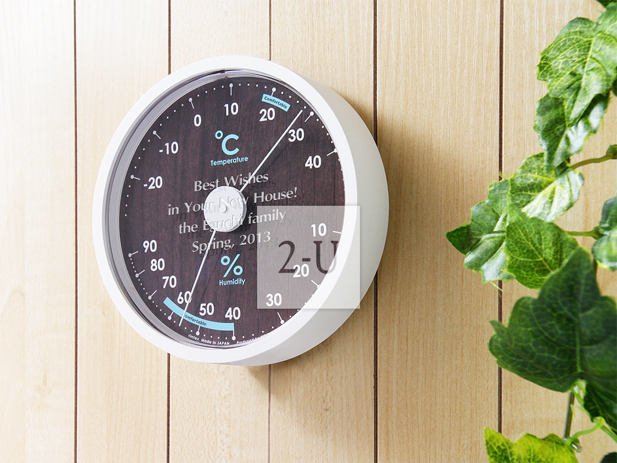 壁挂桌上放置两用的简约时尚温湿度计。尺寸小巧可爱。放哪里都自然。适宜居住的温度和湿度范围有特别的颜色显示 "comfortable"。可以方便调节室内温湿度以适应人体舒适度。