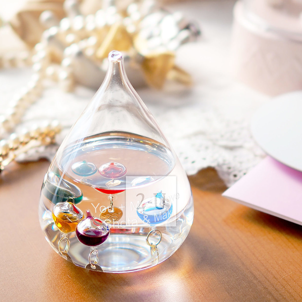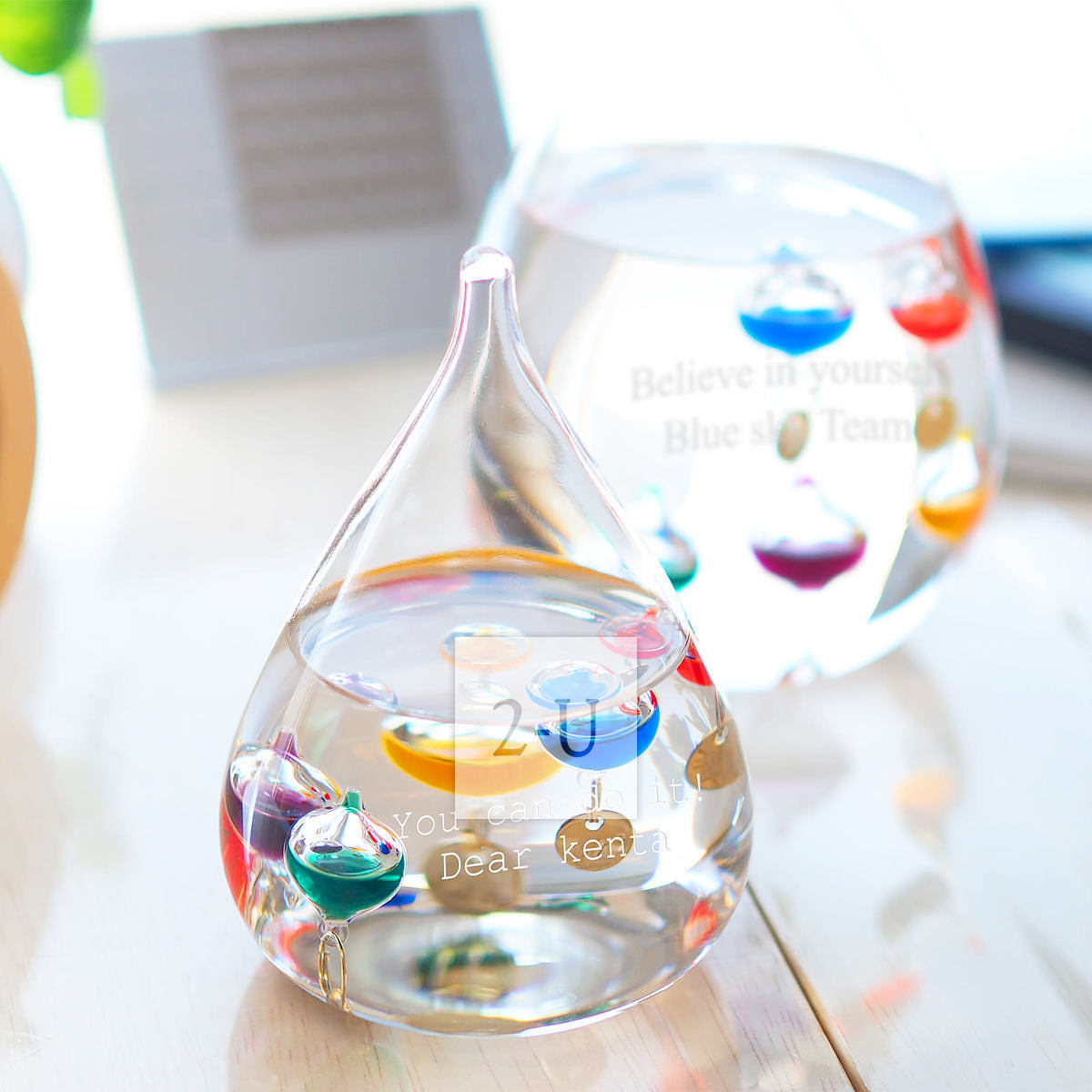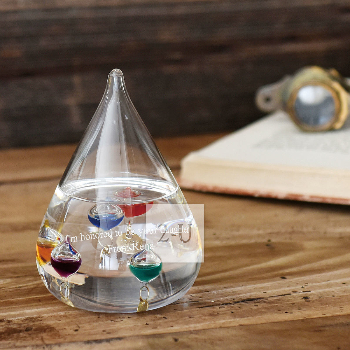同样可以在伽利略温度计上刻字,如座右铭、生日快乐等等。