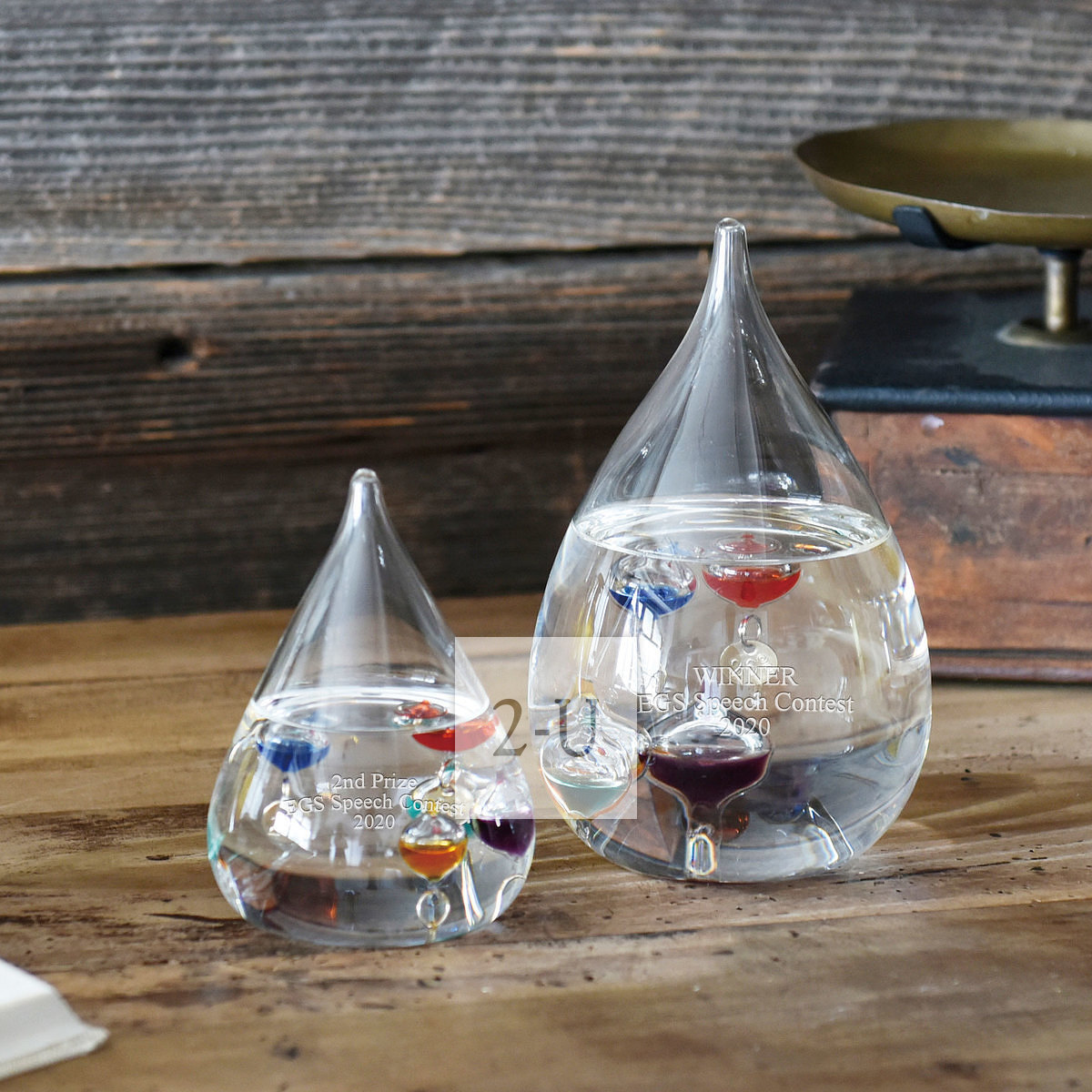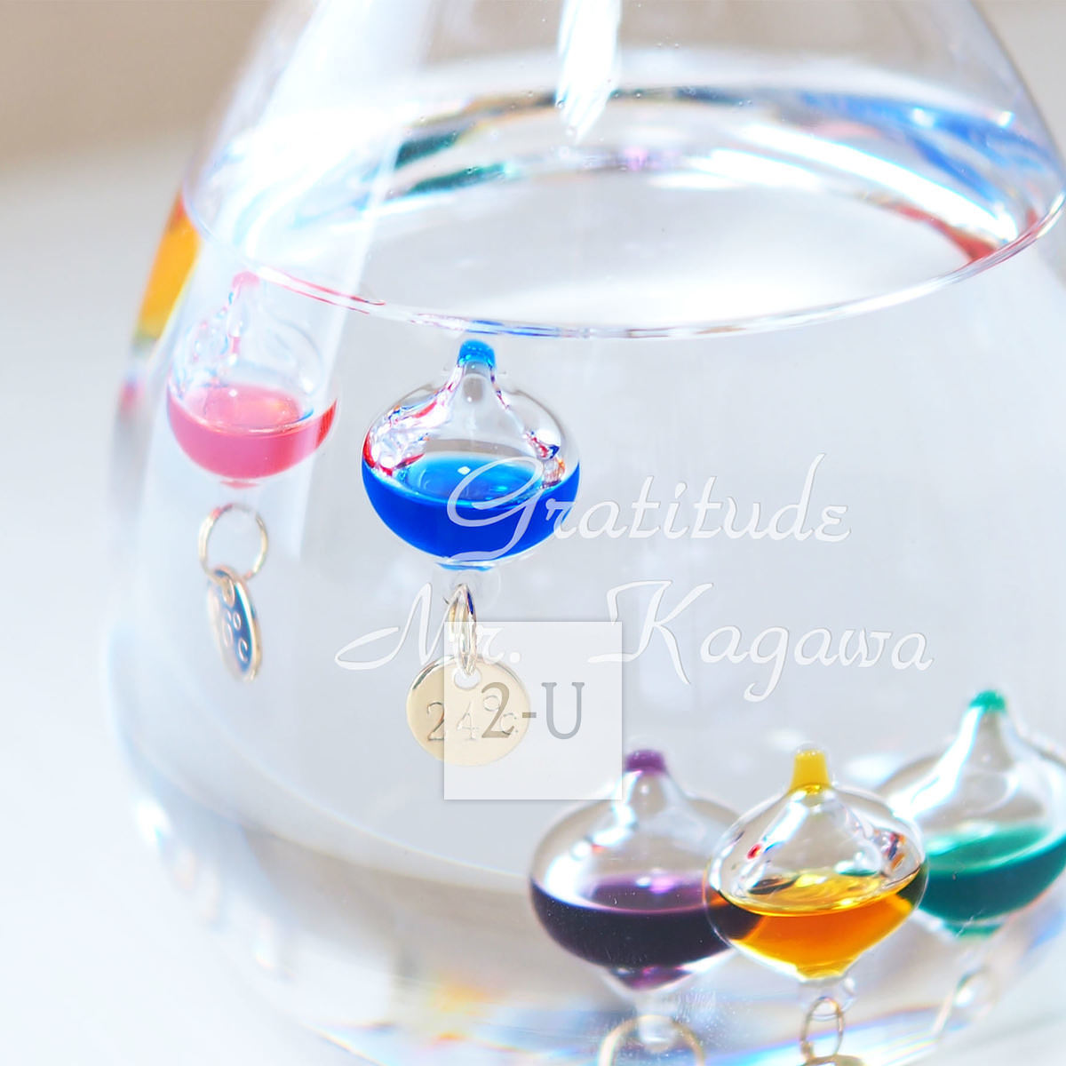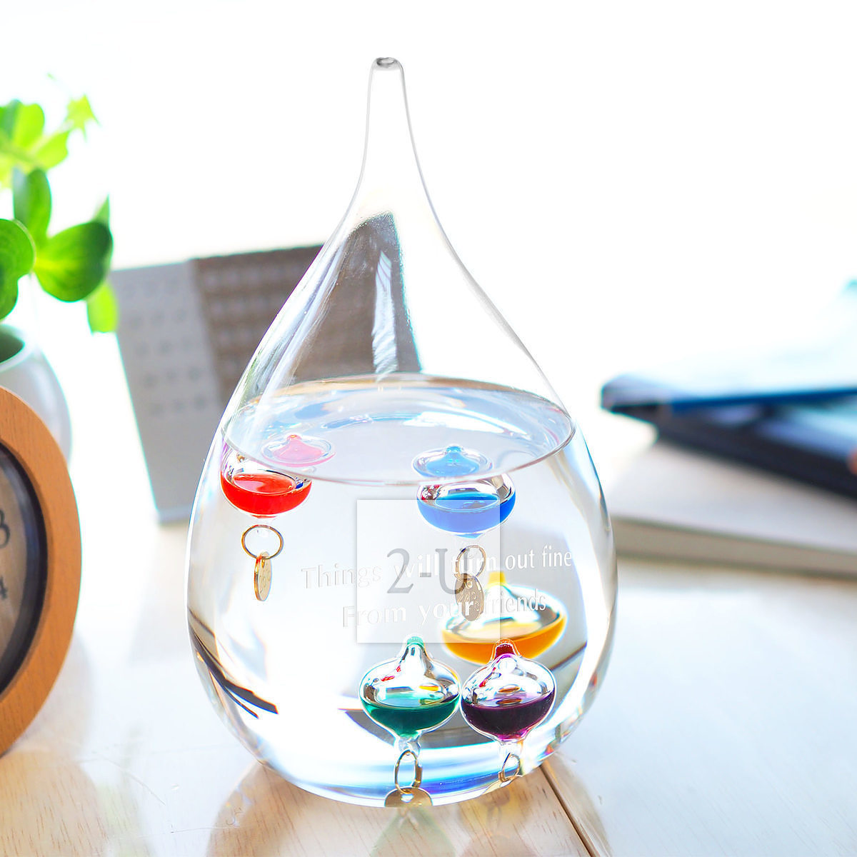 同样可以在伽利略温度计上刻字,如座右铭、生日快乐等等。