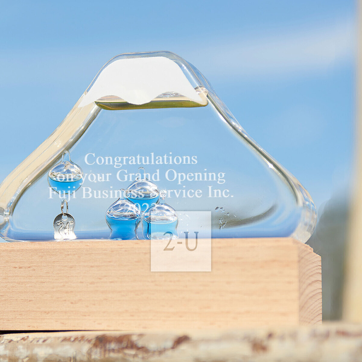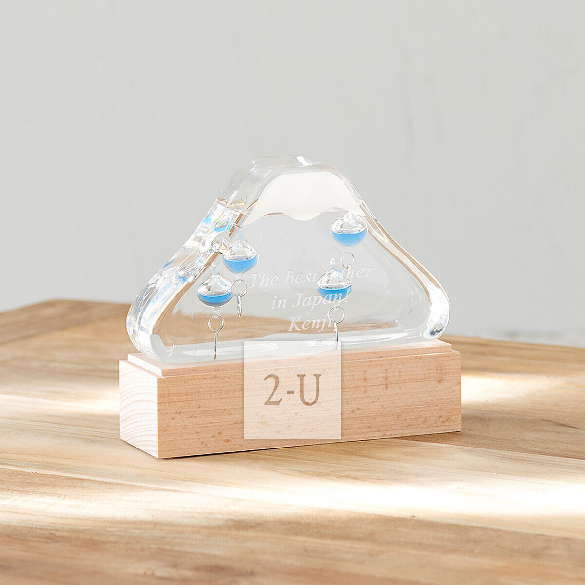 可爱的玻璃富士山稳坐于充满温润感的天然木底座之上。浮球在液体中惬意地轻盈漂浮,为您告知室内温度,是一款兼具实用性与治愈感的室内装饰佳品。